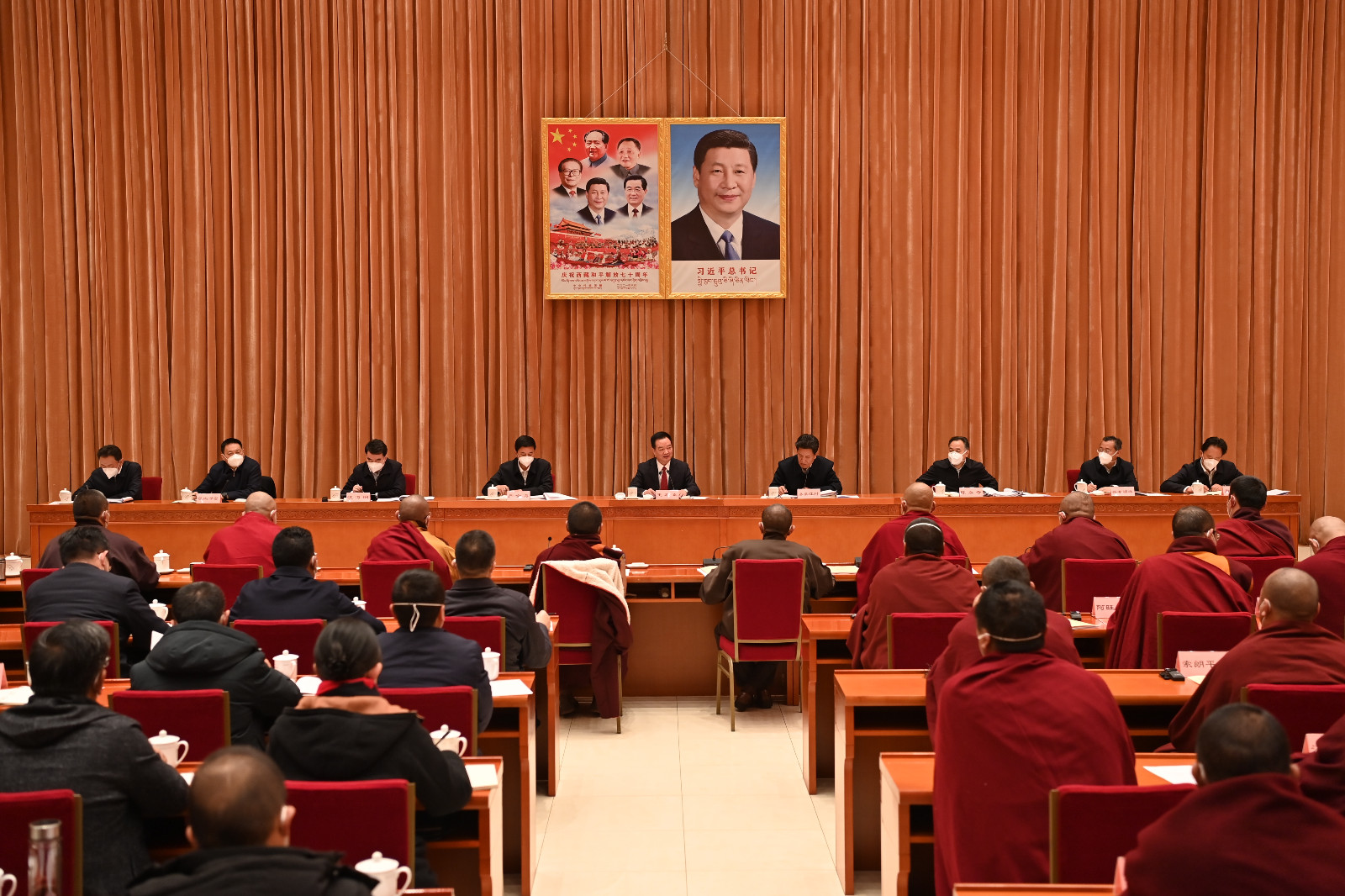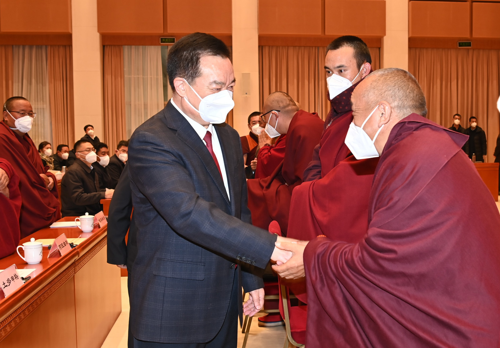 12月28日上午,全区宗教界代表人士座谈会在拉萨召开。自治区党委书记王君正出席并讲话,强调要深入学习宣传贯彻党的二十大精神,深入贯彻落实习近平总书记关于宗教工作的重要论述,坚持藏传佛教中国化方向,巩固拓展“国家意识、公民意识、法治意识”教育活动,为全面建设社会主义现代化新西藏凝聚力量。