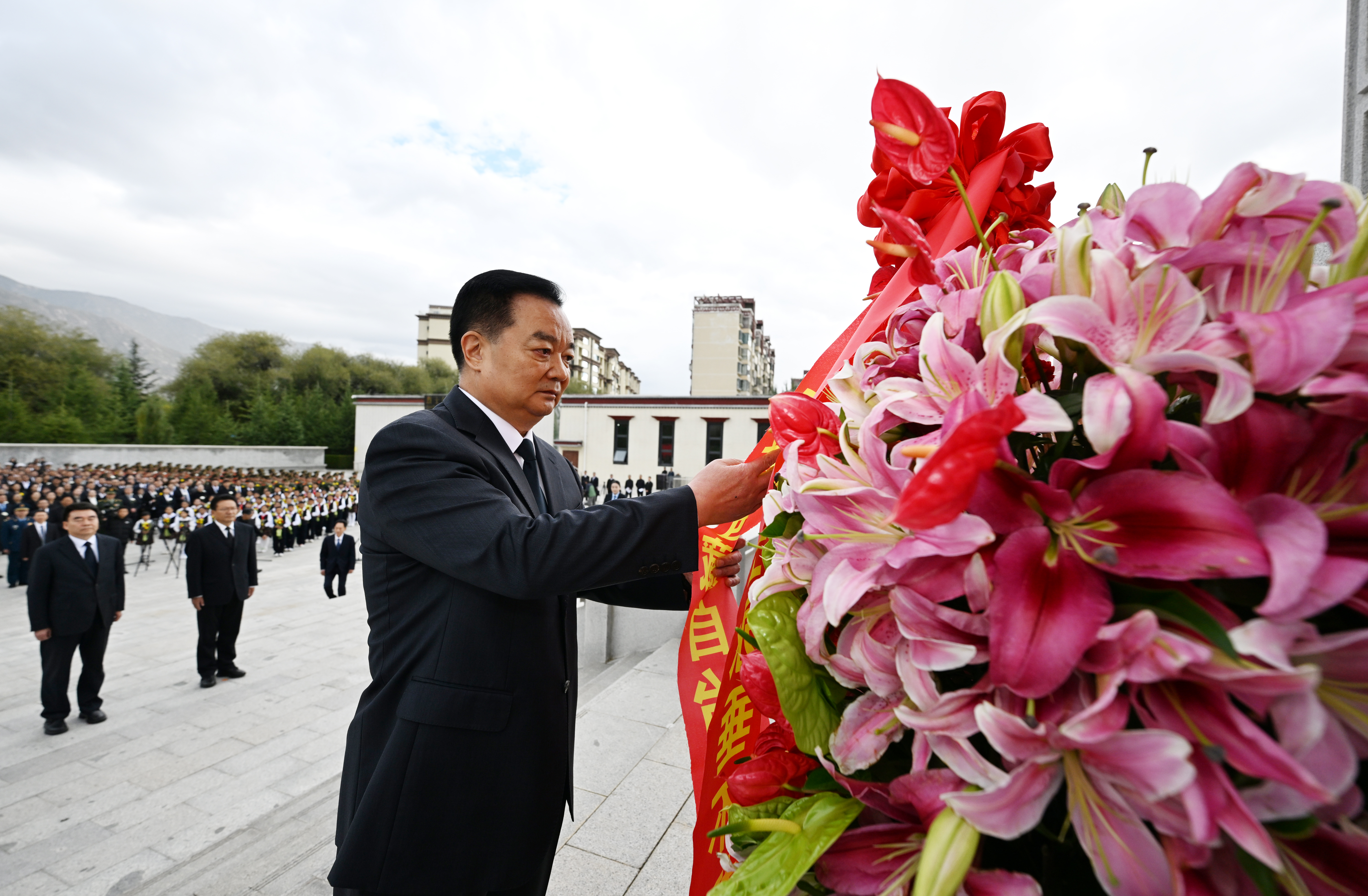 英名垂青史,鲜花祭忠魂。9月30日上午,自治区举行烈士纪念日向烈士敬献花篮仪式。自治区党政军领导同全区各族各界干部群众代表一起在拉萨烈士陵园向烈士敬献花篮,深切缅怀革命先烈,传承红色基因,赓续红色血脉,凝聚建设社会主义现代化新西藏的强大力量。