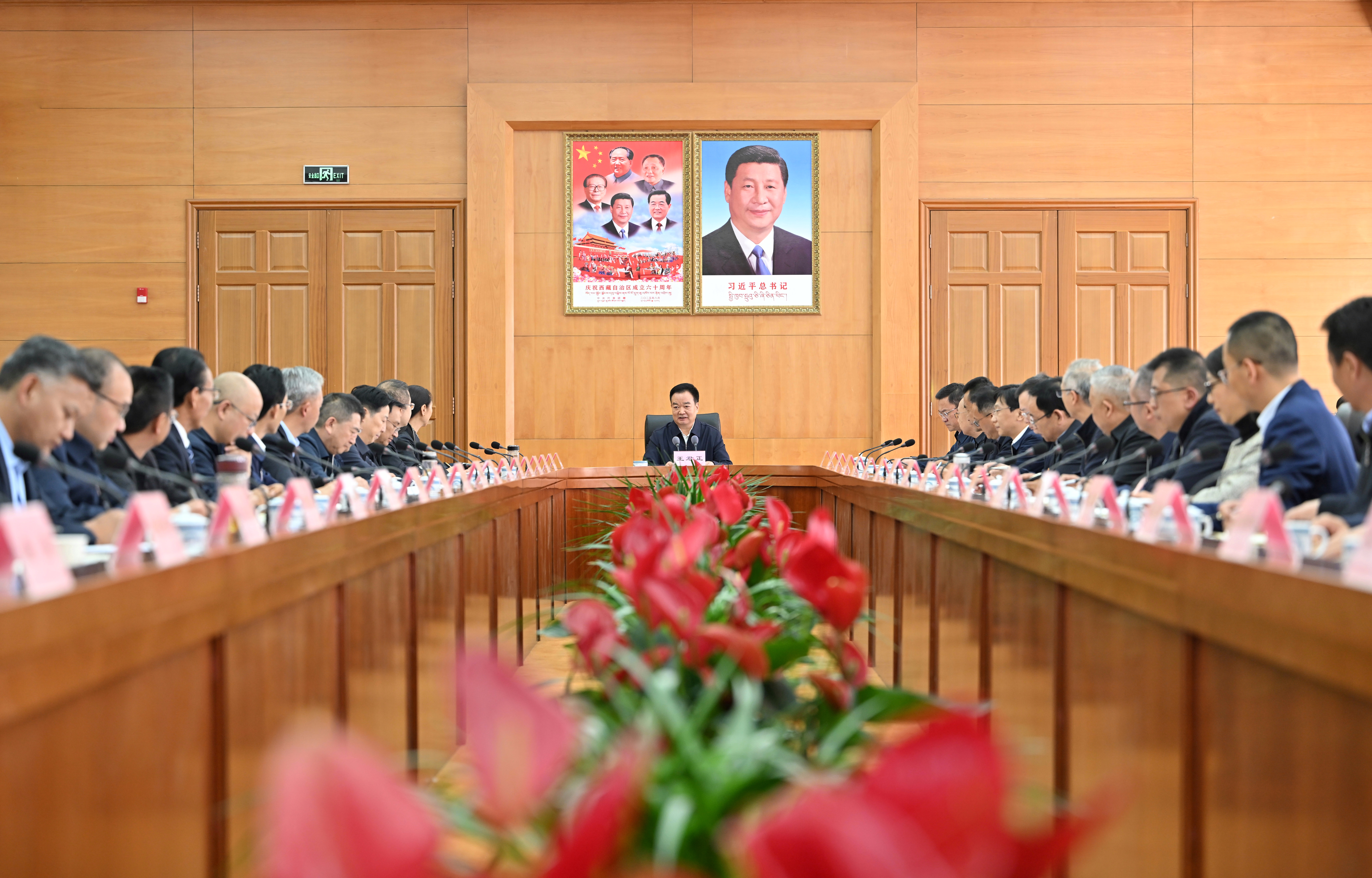 王君正强调,各级干部要坚持以习近平新时代中国特色社会主义思想武装头脑、指导实践、推动工作。全面系统掌握习近平新时代中国特色社会主义思想的科学体系、核心要义、实践要求,学深悟透蕴含其中的科学世界观、方法论,坚持好、运用好贯穿其中的立场观点方法,真正入脑入心、见之于行。深刻领悟“两个确立”的决定性意义,坚持把“两个维护”作为最高政治原则和根本政治规矩,始终在思想上政治上行动上同以习近平同志为核心的党中央保持高度一致,以实实在在的工作成效确保习近平总书记重要指示和党中央决策部署在雪域高原落地生根、开花结果。