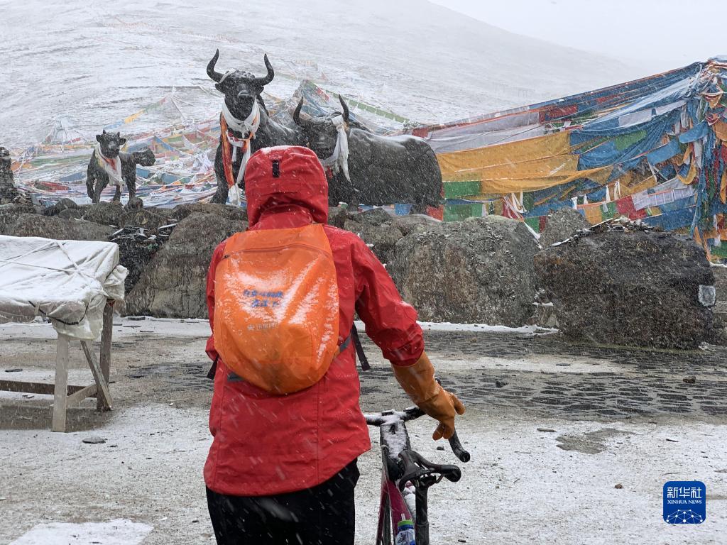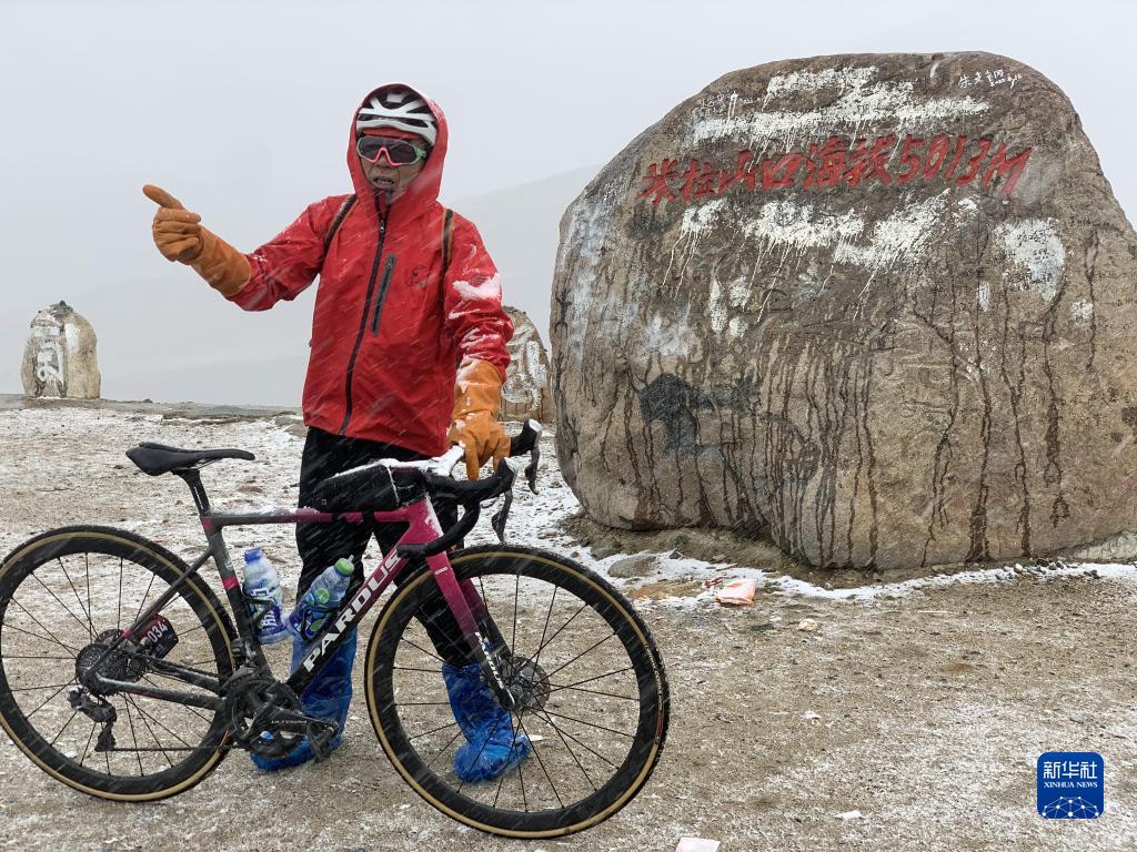 (参赛选手邹建生在海拔5013米的米拉山口留影)