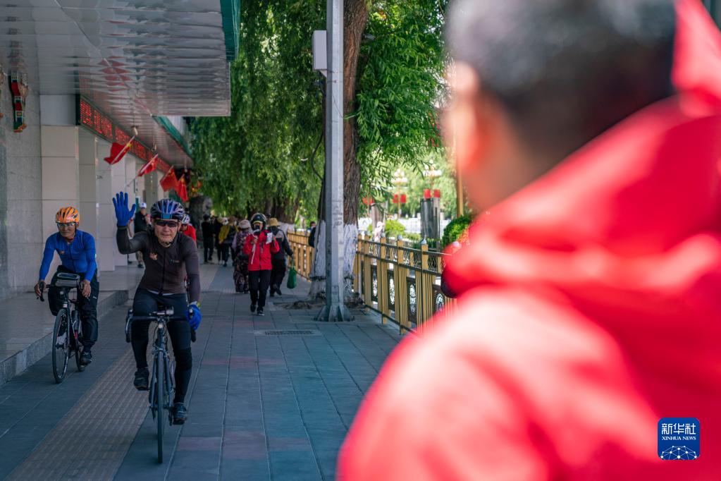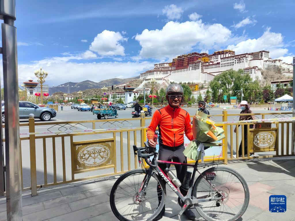 来自深圳的张敬忠抵达位于布达拉宫脚下的终点