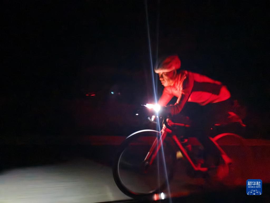 (正在夜间骑行的参赛选手侯维宇)
