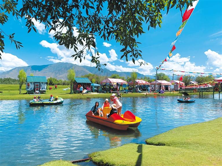 时下,正是“过林卡”的最好时节,为了吸引客源、招揽生意,林卡经营者不断完善基础设施,搭建漂亮的帐篷,提供特色服务,满足市民游客戏水、划船、健身运动和特色美食等需求。