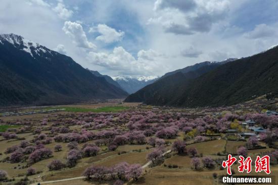 4月14日,西藏小“江南”林芝市工布江达县桃花正盛放。这里海拔3400多米,森林覆盖,雪山映照,桃花花期比西藏其他地方的更晚一些。