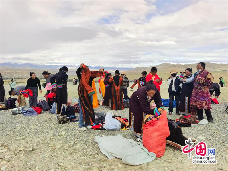 我所说的这场观演之最,应是旅游达人们所难以企及的。譬如,观演现场的海拔约4000米,比滇西北《印象丽江》的演出场地还高了800多米,这或许就是全世界观演海拔之最;演艺舞台以沙土和卵石就地铺筑,不仅大风起兮尘飞扬,就是演员俯身舞台也会带起一身沙土,因陋就简可谓达到极致;从演艺表演看,几十位演员之身姿仪表和举手投足,看不大出专业痕迹,估计应是来自家乡田野的农牧民;演出现场仅有扩音的麦克风,道具和配套设施也不够专业,演员更衣就在露天,演前热身也不避人;作为观演之众既是幸运、也是疲乏,由于演出尚未常态化,能够碰巧遇上实属不易,但没有观众席可以落座,先来后到都要站着围观,时长达到一小时,也很耗氧费神。说了这些,便不难看出,这是一场临时性大于常规性、业余性大于职业性、表演性大于艺术性的乡间文旅演艺。