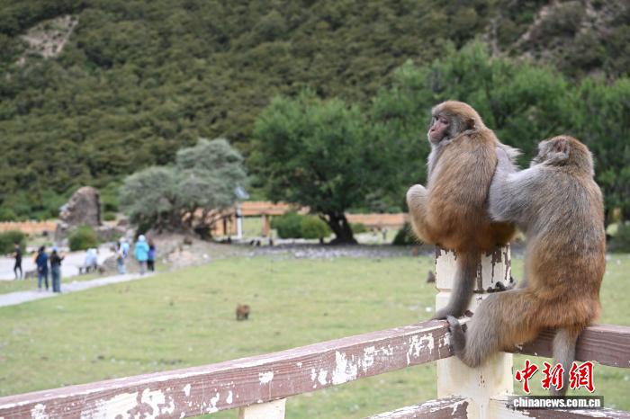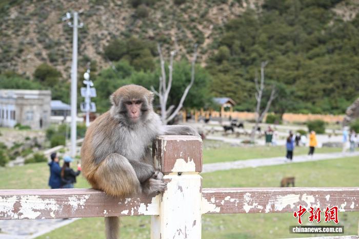 图为林则村的林则生态文化旅游景区里的藏猕猴。中新社记者 贡嘎来松 摄