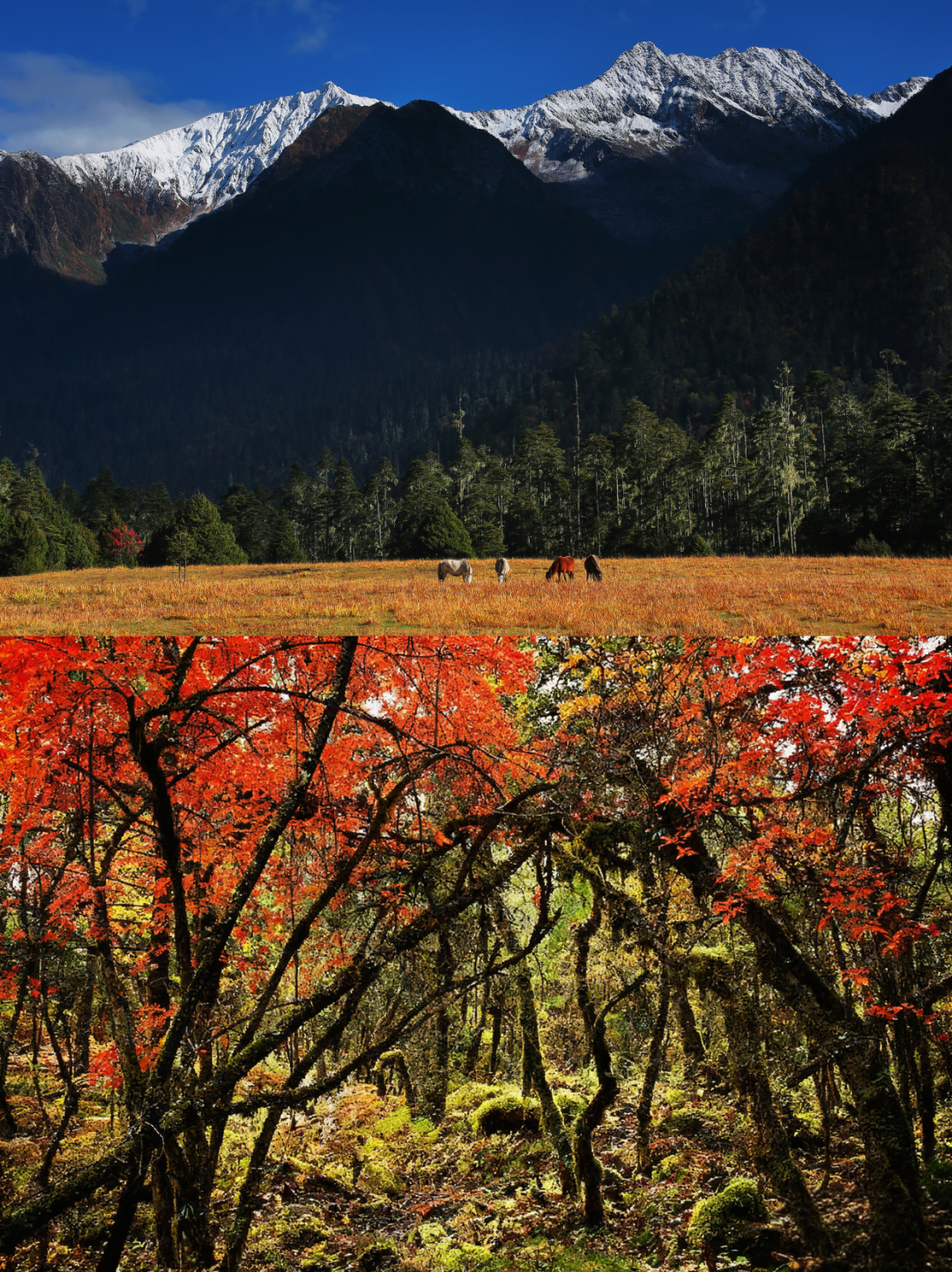 南伊沟别错过!《现在就出发》嘉宾在这儿的木栈道徒步,红的、黄的草木衬着雪山,还能体验珞巴族文化。