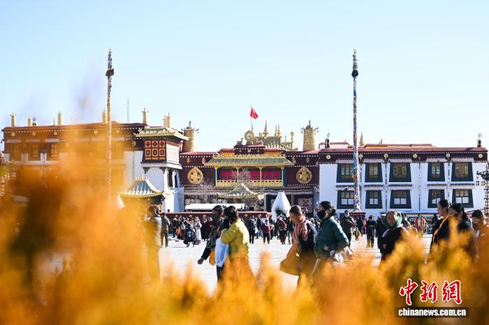 11月28日,西藏拉萨,信众在大昭寺转经。西藏进入冬季农闲期,众多藏传佛教信众从各地汇聚到拉萨,围绕林廓转经路、大昭寺等地转经、礼佛、朝拜。中新社记者 贡嘎来松 摄