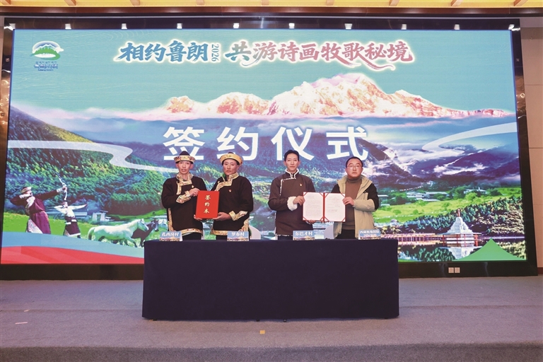 现场,还举行了签约仪式,鲁朗东巴才村、罗布村、扎西岗村村委会代表与拉萨多家优质旅行社签订合作意向协议。双方围绕文旅深度融合发展趋势,聚焦沉浸式体验、定制化旅游等细分领域展开深入交流,达成多项合作共识,将进一步拓宽鲁朗景区的客源渠道,提升品牌影响力。