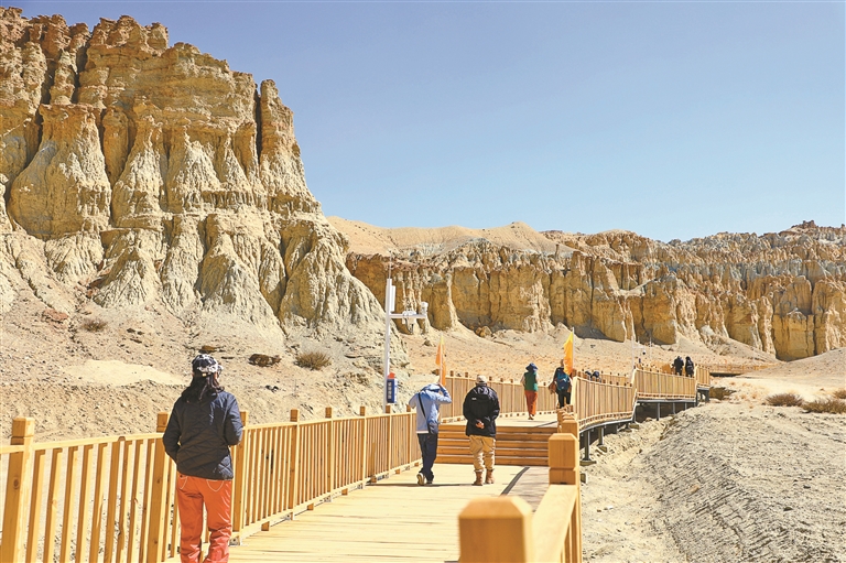 游客们在香孜五彩土林景区内游览。记者 永青 摄