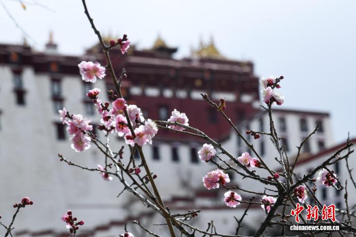3月8日,西藏拉萨宗角禄康公园,桃花竞相绽放。阳春三月,古城拉萨杨柳发芽、桃花初放,春意渐浓。中新社记者 贡嘎来松 摄