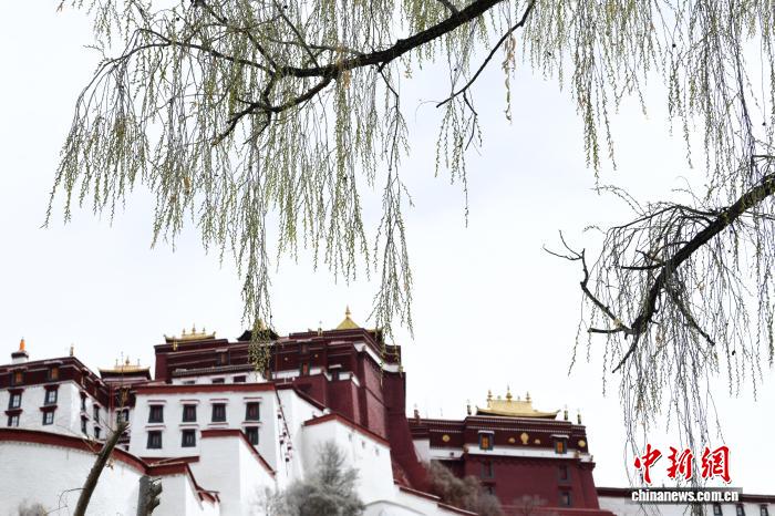 3月8日,西藏拉萨宗角禄康公园,杨柳发芽。阳春三月,古城拉萨桃花初放、生机盎然,春意渐浓。中新社记者 贡嘎来松 摄