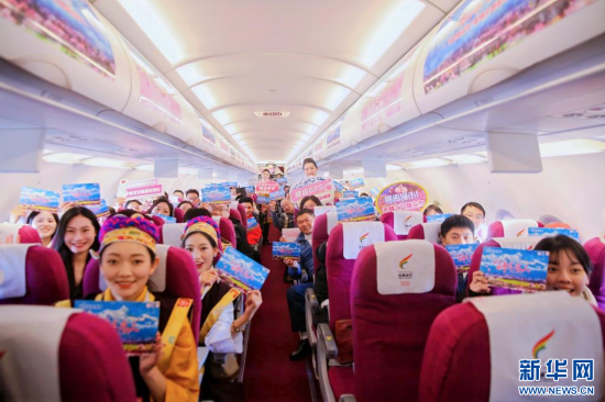 记者从西藏航空获悉,近日,“桃花恋·林芝情”为主题的西藏航空“林芝桃花号”TV9730爱情主题航班平稳降落在林芝米林机场。