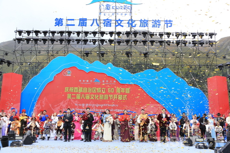 在热烈庆祝西藏自治区成立60周年的喜庆氛围下,9月19日上午10时,第二届八宿文化旅游节在风景如画的然乌湖畔开幕。