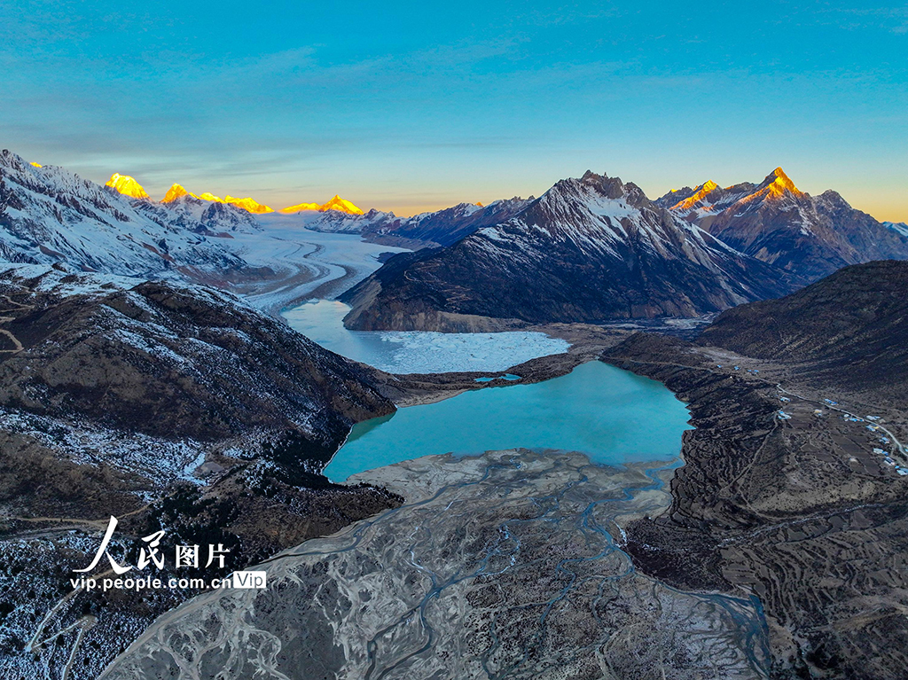 2025年12月1日,西藏昌都市八宿县然乌镇来古村,来古冰川迎来冬季最佳观赏期,景色宁静悠远。