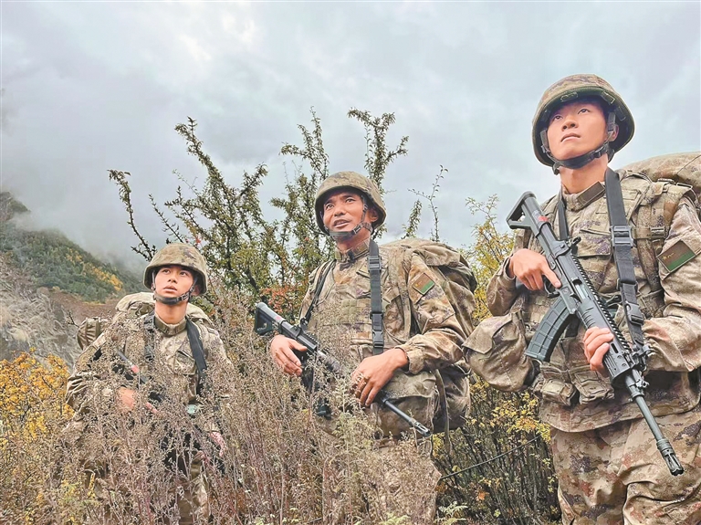 2025年11月,西藏军区某团一级上士次罗布和战友们在巡逻途中观察前方路况。