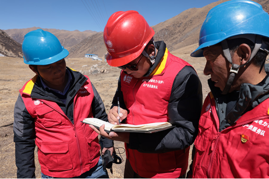 国网墨竹工卡县供电公司员工在拉唐牧区对巡线进行详细记录(3月22日摄)。新华网发(闫昱翰摄)