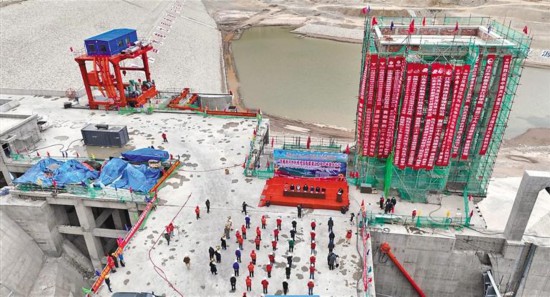 图为湘河水利枢纽及配套灌区工程下闸蓄水现场。扎西顿珠 摄