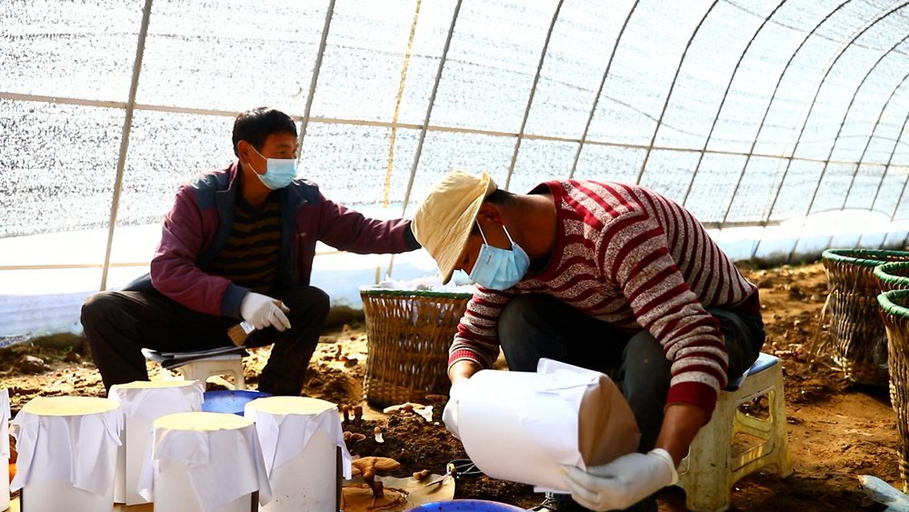 灵芝套袋。