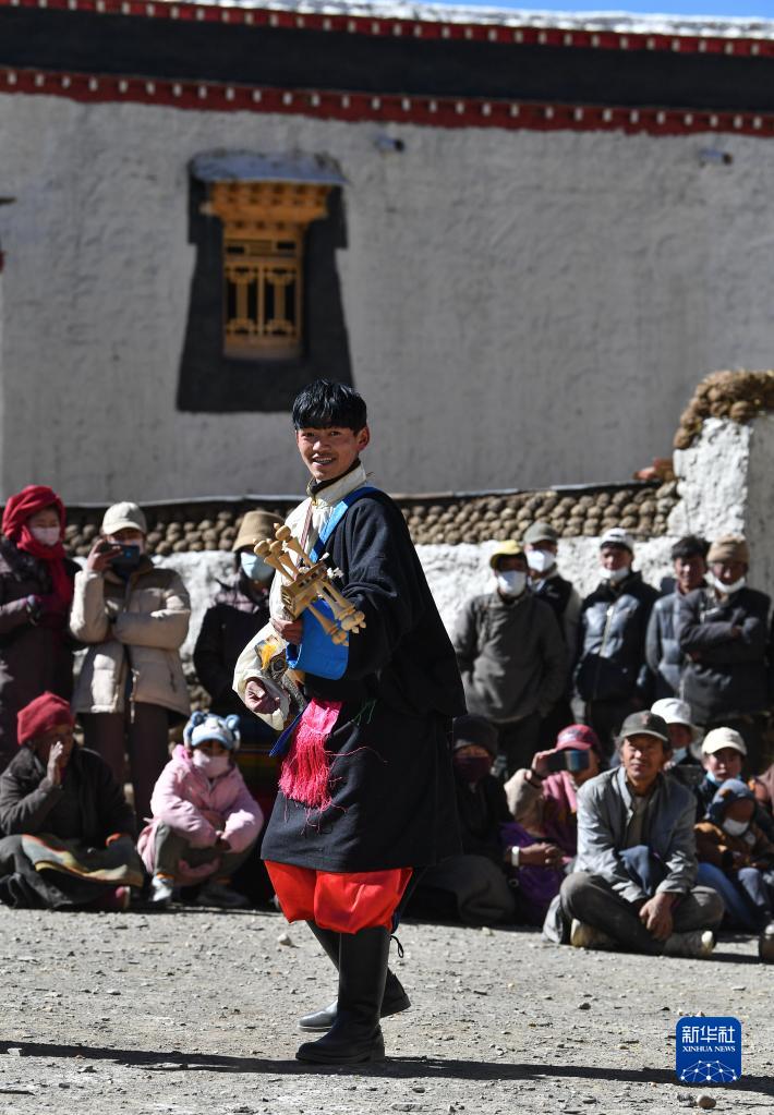 西藏日喀则市芒普乡普村文艺演出队的演员在表演(1月21日摄)。新华社记者 晋美多吉 摄