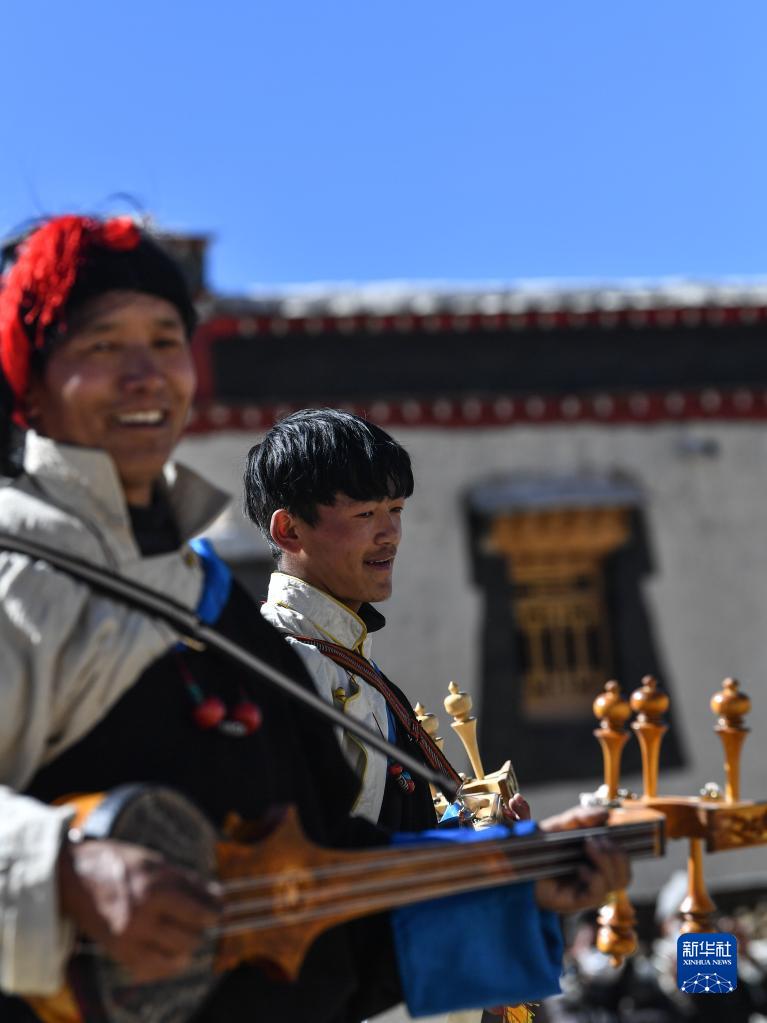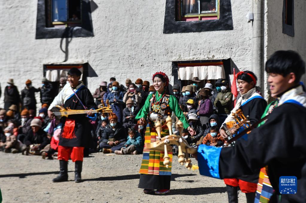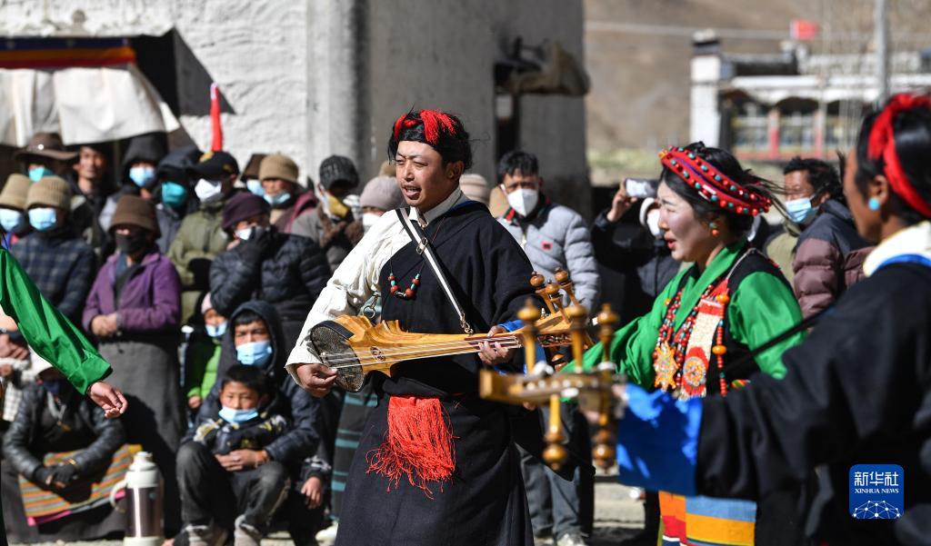 西藏日喀则市芒普乡普村文艺演出队在表演(1月21日摄)。新华社记者 晋美多吉 摄