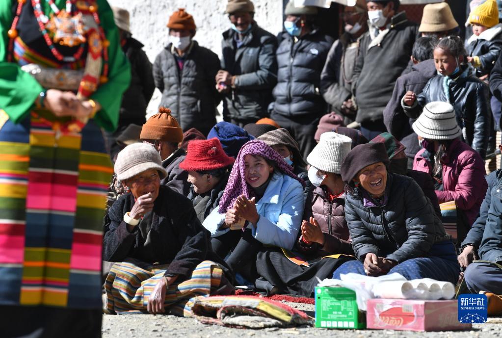 西藏日喀则市芒普乡普村村民观看文艺演出队表演(1月21日摄)。新华社记者 晋美多吉 摄