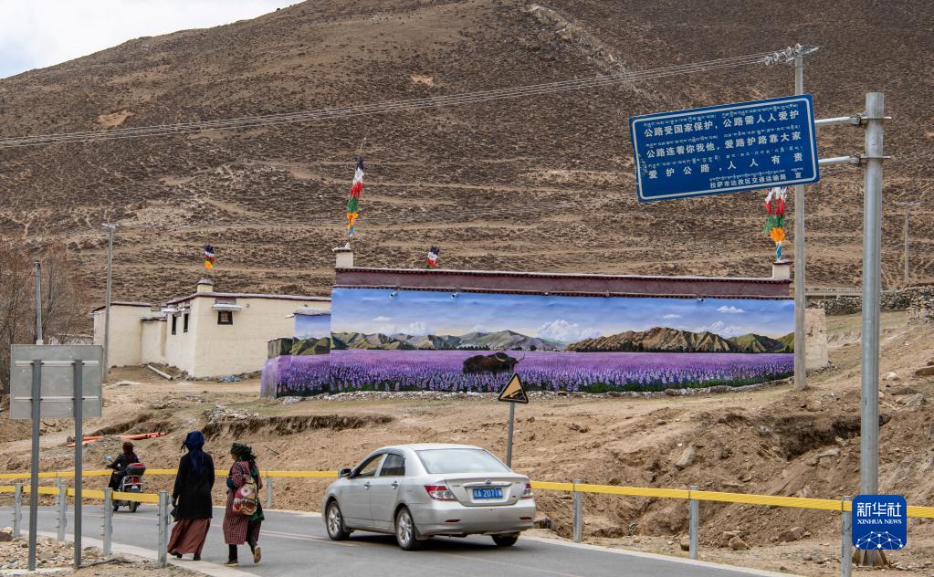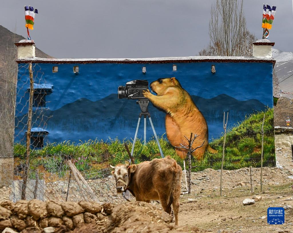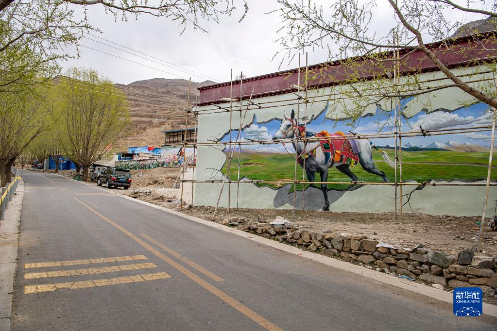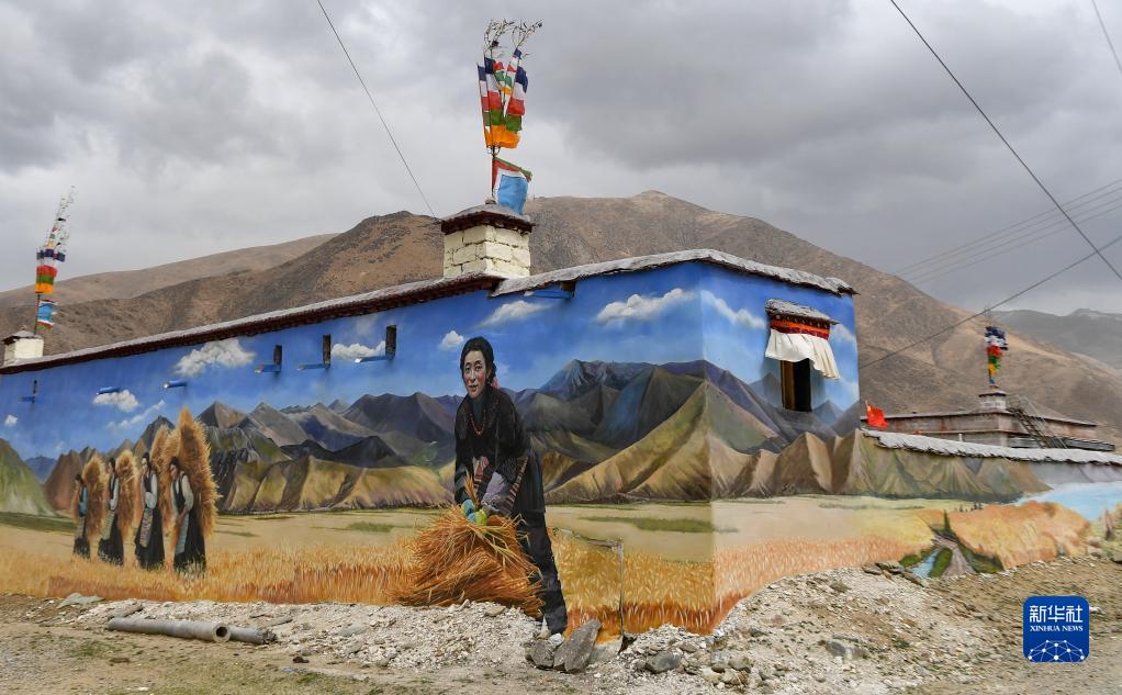 这是4月10日在拉萨市达孜区章多乡恰村拍摄的墙画。新华社记者 孙非 摄