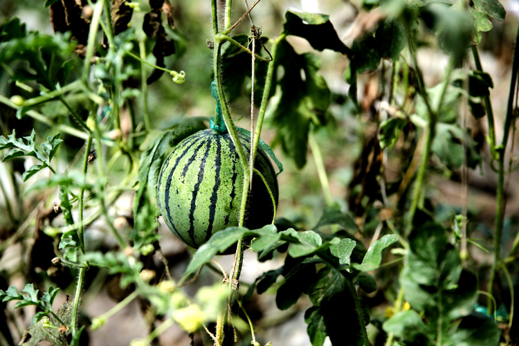 图为白朗县良心蔬菜种植农民专业合作社大棚里这一季最后成熟的西瓜。记者 梁秦 摄