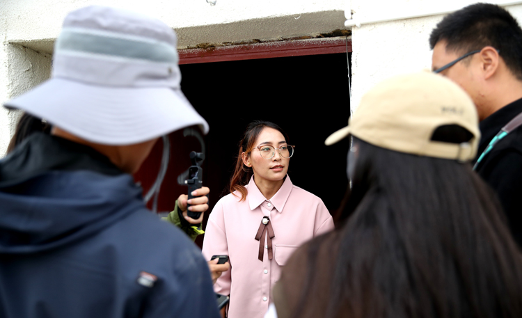 图为白朗县彭仓村返乡创业的大学生格桑旺姆在向记者介绍自己的创业经历。记者 梁秦 摄