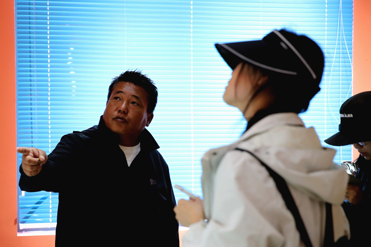 图为白朗县巴扎乡农牧综合服务中心负责人扎旺在彭仓村村史馆内为“寻觅西藏 格桑花开”网络主题活动媒体团一行介绍乡里情况。记者 梁秦 摄
