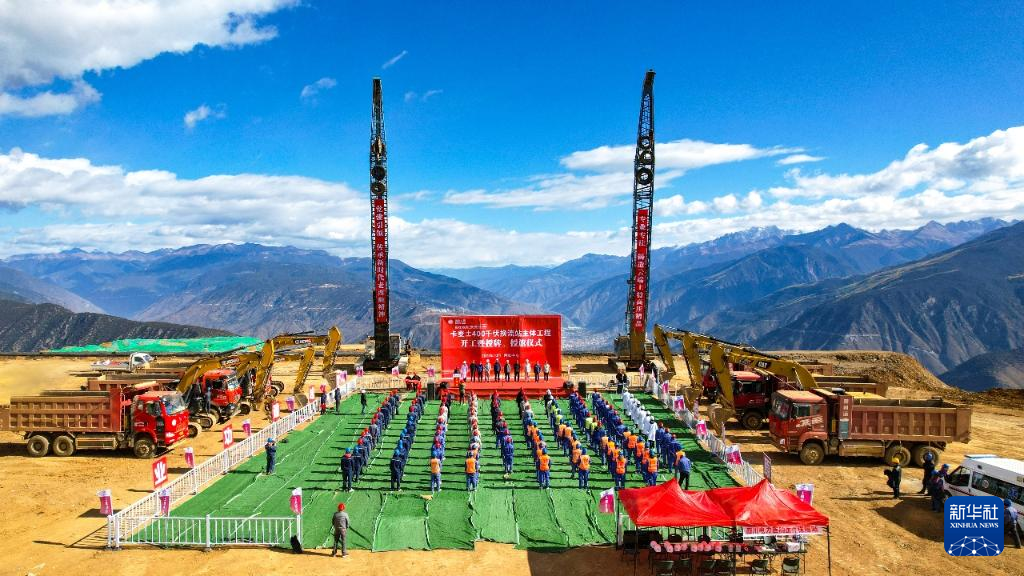 10月20日,金沙江上游至湖北±800千伏特高压直流输电工程卡麦换流站开工建设。当天,西藏自治区昌都市芒康县朱巴龙乡西松贡村工地现场一派繁忙景象。