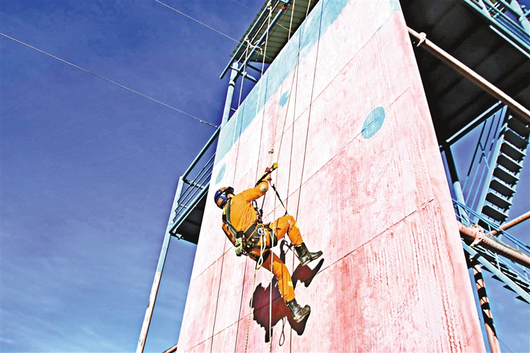 图为消防员开展绳索救援训练。记者 王杰学 通讯员 安茂鹏 摄