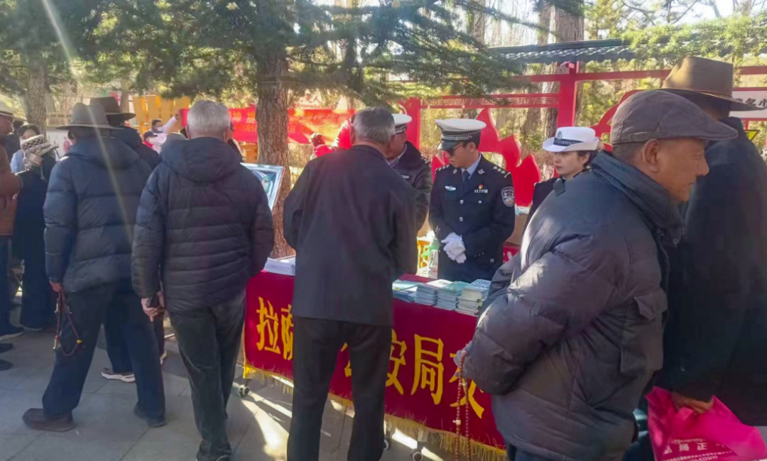 图为拉萨市公安局组织警力前往宗角禄康公园积极开展交通安全主题宣传活动。