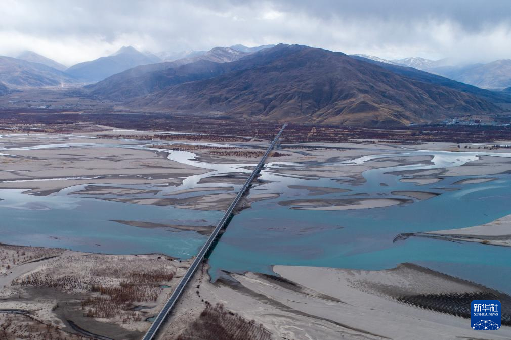 这是位于西藏山南市扎囊县的扎囊特大桥的航拍画面(2月23日摄)。新华社记者旦增尼玛曲珠 摄