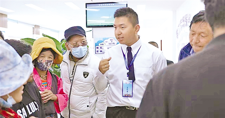 “扫这个二维码,找工作和找零工的信息都在小程序上,点击这里还可以把汉语转换成藏语。”普布吉拿着手机,耐心地教大家使用小程序。