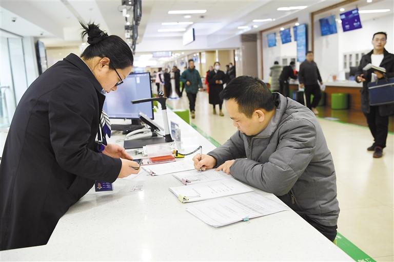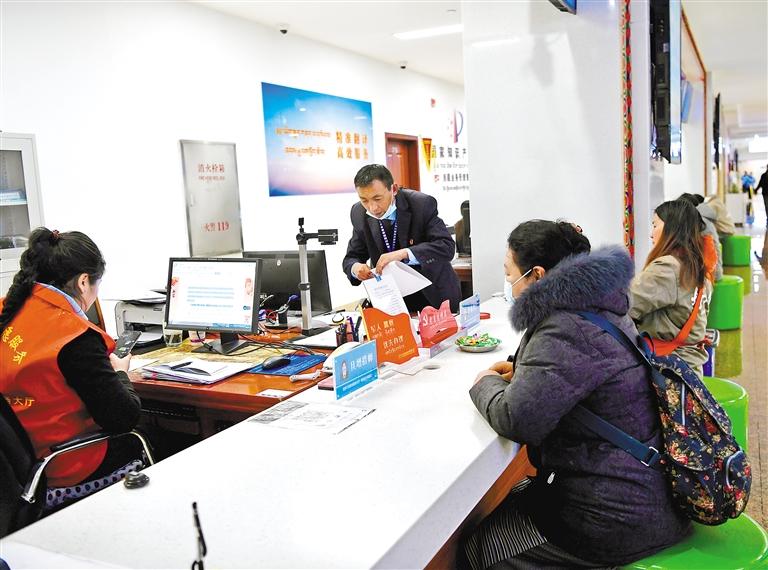 拉萨三级政务服务大厅窗口工作人员为市民群众办理相关业务。本报记者 王敏 摄