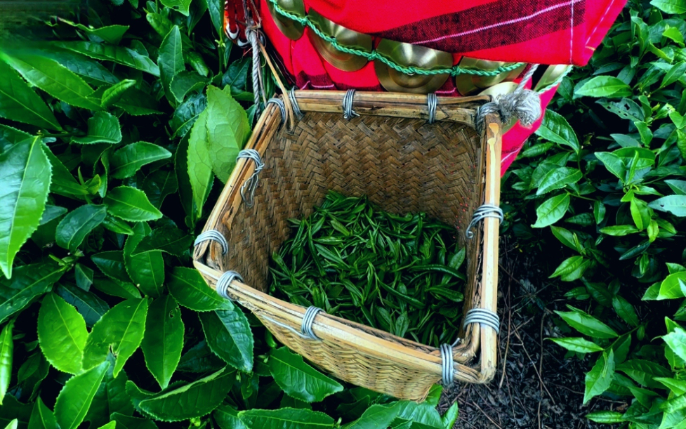 茶厂里人头攒动、欢声笑语,珞巴族女子穿梭在茶树之间,单手轻轻一旋,嫩叶飘然入篓,不一会儿,篓里已是一片青绿。