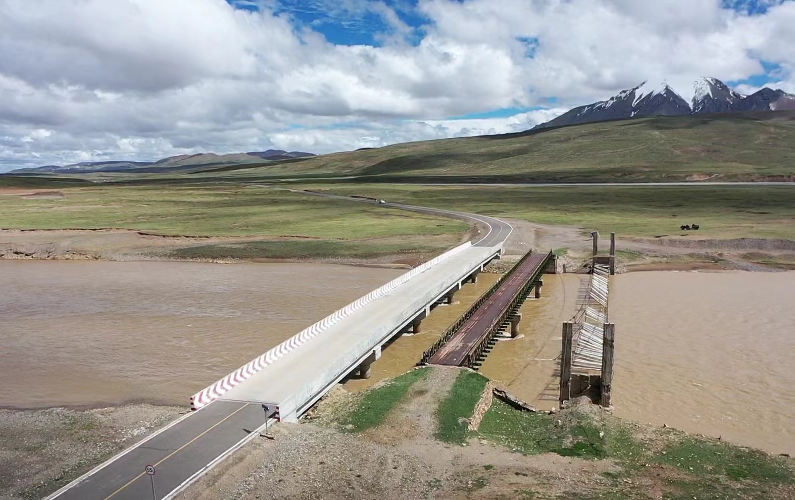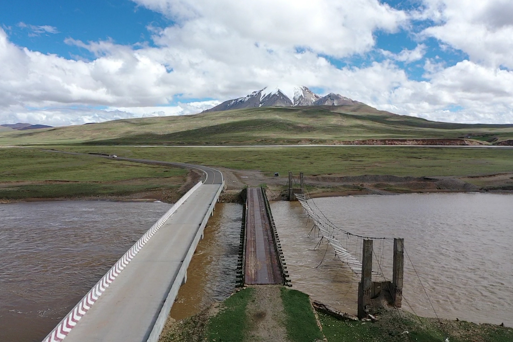 位于那曲市安多县雁石坪镇和多玛乡自然交界线、当曲河上面有一道独特的景观——三座不同年代的桥并肩竖立。这三座桥分别建于不同历史时期,见证了西藏交通事业的跨越式发展、历史性成就。改革开放以来,特别是党的十八大以来,西藏交通进入快速发展的历史最好时期,一条条团结线、幸福路在雪域高原延伸,不断创造交通奇迹,宛如高原人民走向幸福生活的“金色哈达”,为西藏高质量发展注入新活力。