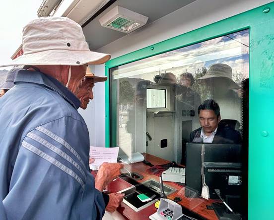 8月20日,在山南市乃东区特困人群集中供养中心,银行工作人员在流动金融服务车上为群众办理业务。新华网发 吴熠斐 摄