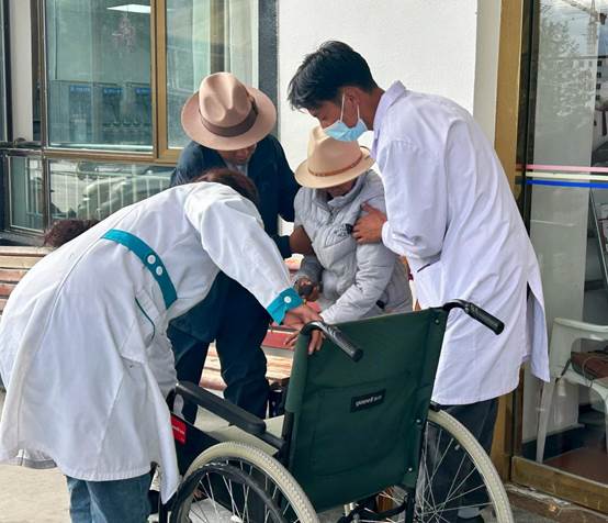 8月20日,在山南市乃东区特困人群集中供养中心,工作人员帮扶老人。新华网发 吴熠斐 摄