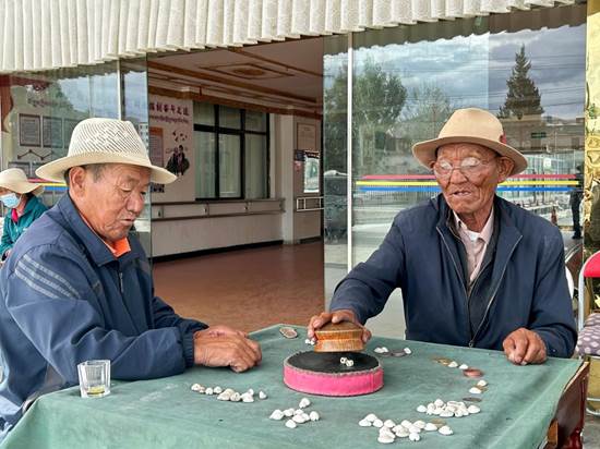 8月20日,在山南市乃东区特困人群集中供养中心,老人们在等待办理业务时娱乐休息。新华网发 吴熠斐 摄