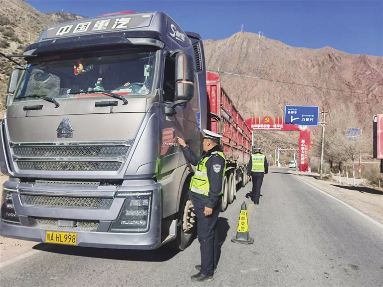 民警对过往车辆进行检查。