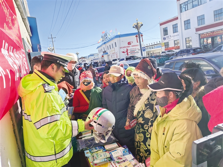 民警宣传道路交通安全知识。图由自治区交管局提供