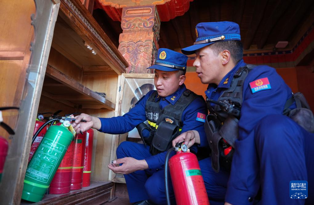 12月5日,布宫消防救援大队队员在例行检查消防设备。新华社记者 晋美多吉 摄