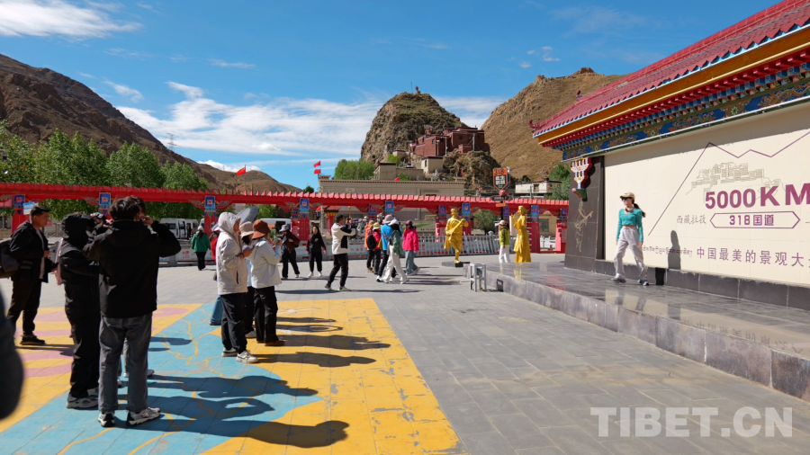日喀则市拉孜县强公村位于318国道5000公里处,这里是游客们前往珠峰景区的必经之地,也被称为“3185旅游服务区”。日前,记者在这里看到,有大批游客选择在村口的318国道5000公里纪念碑前打卡。