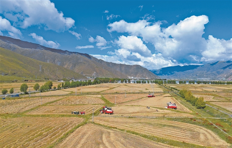 近年来,随着我区经济社会持续发展,农牧区生产机械化进程显著加快。无论是田间地头的耕作,还是广袤草场的作业,机械正日益取代传统的人力劳作方式。近日,在拉萨市墨竹工卡县的田地里,机械的轰鸣声与丰收的繁忙景象交织在一起,勾勒出高原农牧业现代化发展的生动图景。