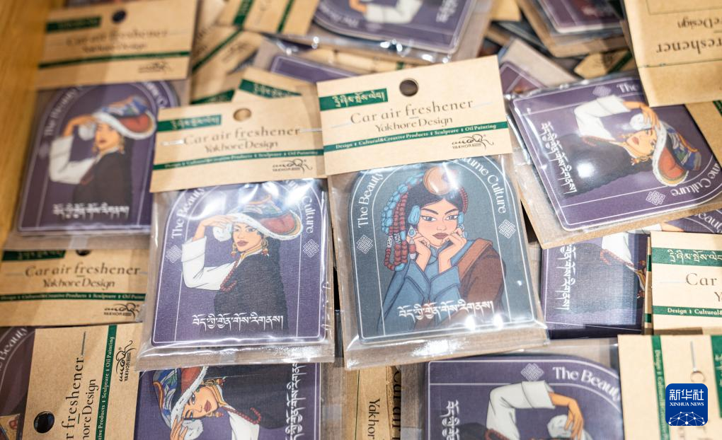这是在西藏一家文创超市里拍摄的西藏雅阔热品牌设计有限公司设计制作的藏装主题车挂香片(9月29日摄)。新华社记者 丁增尼达 摄