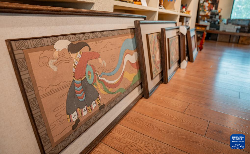 这是西藏雅阔热品牌设计有限公司设计制作的“久河卓舞”主题装饰画(9月16日摄)。新华社记者 丁增尼达 摄