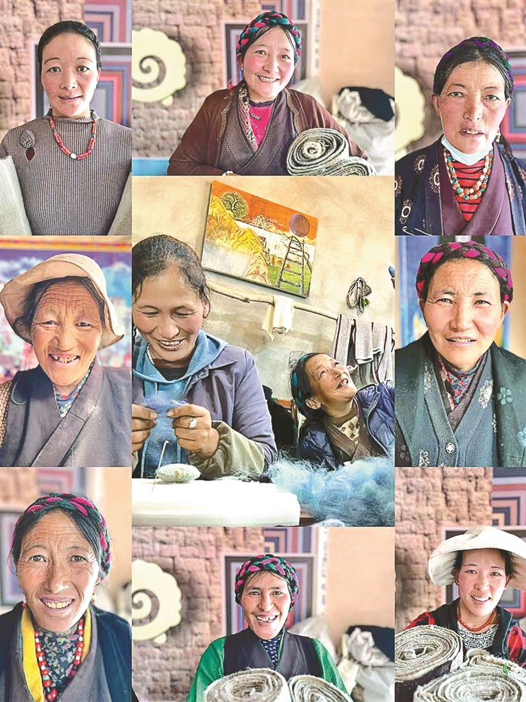 “我们的原材料(羊毛、羊绒),都是从周边村子收购的。其实,以前很多群众家的羊毛要么自用,要么送人,几乎很少出售。现在,他们可以送到我这里,以7元/斤到10元/斤的价格出售。”次仁曲珍坚信,古老的纺织技艺与珍贵的羊毛(绒)材质融合,是每一位阿佳用心编织的直抵人们内心深处的柔软,更是她们的五彩梦想。