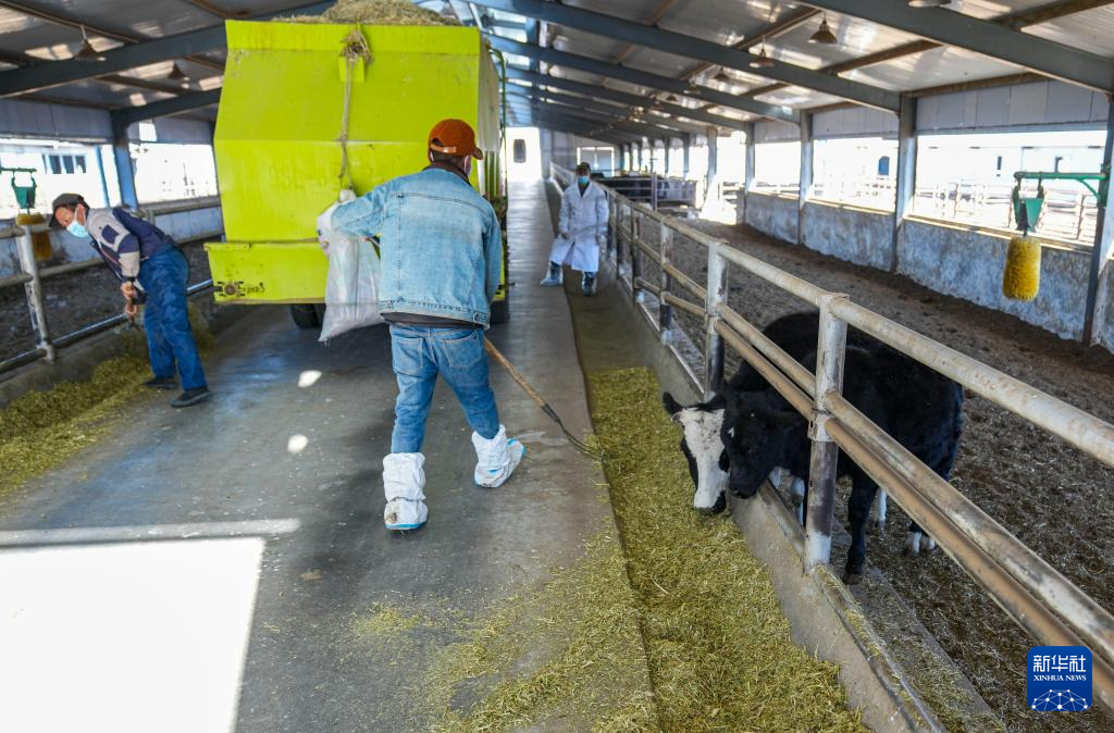 12月3日,克隆樟木牛母犊在西藏动物疫控中心(区畜牧总站)曲水实验站牛场吃草料。新华社记者 丁增尼达 摄